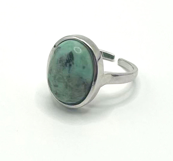 Precio de fábrica acero inoxidable + anillo de piedras preciosas de cabujón turquesa africano ovalado