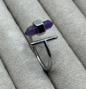Mejor Venta de acero inoxidable + amatista Pentágono cilindro anillo de piedras preciosas