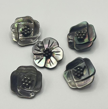 Botones de concha gris de diseño especial al por mayor de fábrica con patrón de flores